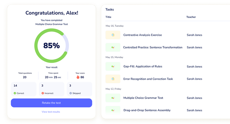 Use the lesson constructor to create interactive tasks that can be used to work with student speech. Use assembled interactive lessons with multiple students.