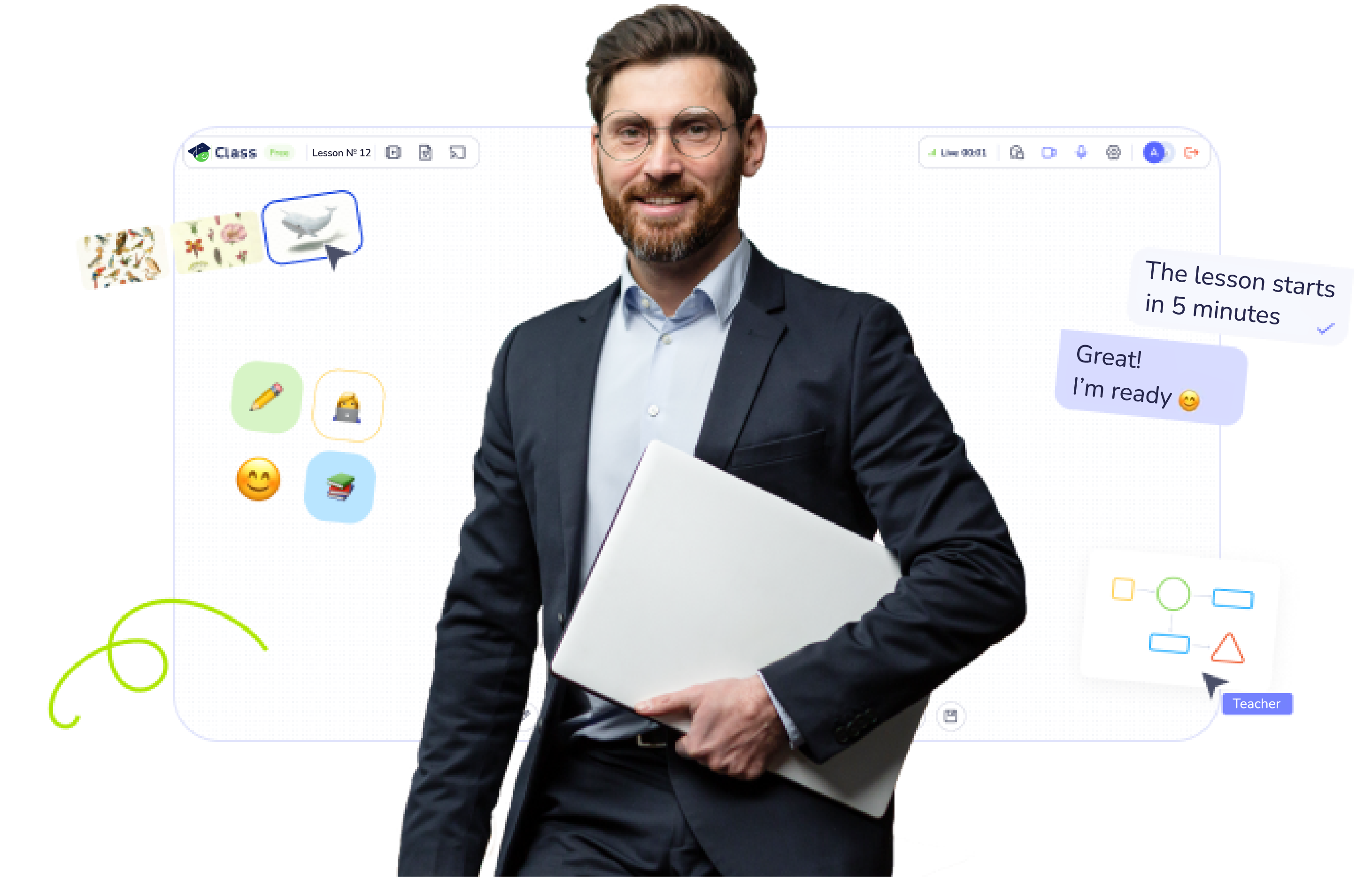 A tool solving the problem of student "loss" during the lesson. It's easy to see what the student is focused on and their cursor by clicking the tracking tool. This is the first legitimate way to monitor the student while working on the online board.